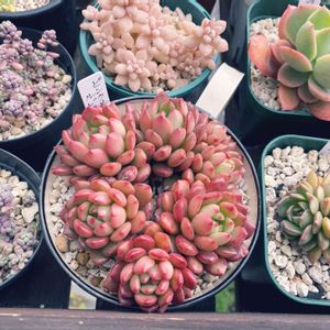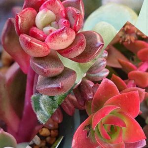 多肉植え替えしてます。 お迎えしたもの、仕立て直したもの、植え替えなどなど、これからの成長を想像しながらの作業がとても楽しいです😍 地植えも挑戦してみたいと思ってます! 北国なのでリスクがありますが。 2つ品種がわかりません。教えて下さい! #多肉植物#植え替え#仕立て直し#お迎え#七福神#パールフォンニュルンベルク#ピンクルルビー#スヨン#久米の舞