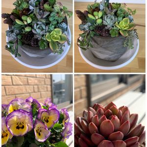 多肉植物の寄せ植え教室に行ってきました😆GSでステキな寄せ植えをたくさん見てるからなんとかなるかなぁと思ったけど難しかった😅 またやりたいけど寄せ植え用の多肉が… みなさん持ってる多肉で寄せ植えできてるのかな? 朝昼の気温差があるのでピンクルルビーの色が鮮やか💕 良く咲くスミレ ブルーベリーパイも可愛いです☺️