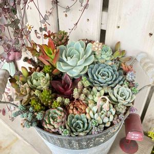 残っていたトットさんの韓国苗と うちの子たちとで、バケツに寄せ植え🪣 最低気温も5℃は下回らないようになってきたし、陽射しの角度も変わってきたし。。。冬支度の片付けと多肉台の移動に、仕立て直したい寄せ植えもたくさん❣️ やりたいこと、いっぱい❣️ 春がやって来た🤗❤️