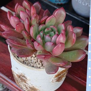 セデベリア属?グラプトベリア属? ピンクルルビー?ピンクルビー? いろいろな謂れのある100均の多肉さんです😅カワイイし外管理できる強健種なので何でもいいです🤗 植え替えるときに子株は全部外したのですが、既に芽吹いてます💦 いっそ群生させてみましょうか😆鉢が小さいから群れてきたらちょっと考えます🥺
