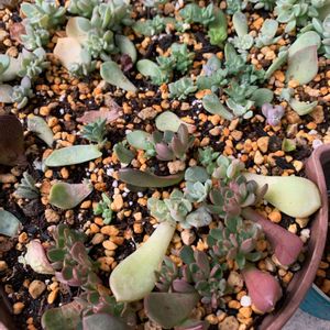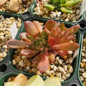 手前の赤っぽいのがピンクルルビーです。葉挿し成功率高い気がします😊 このまま大きくなりますように✨