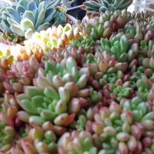 【グラプトベリア属 バッシュフル】 Graptoveria 'Bashful' Graptoveria 'Pinkle Ruby' Graptoveria 'Jujube' 別名 ピンクルルビー ピンクルビー ジュジュベ なつめ 交配種 交配親不明 その名の通り色は全体的にピンクで、 中心部はグリーンらしいのですが、 残念ながら今は葉裏のみピンクです DAISOで購入 マメチャン ヤット ミツケタヨ (*‘ω‘ *) 属名の見解が別れ、 名前も色々あるみたいですので、 2つのサイトをご紹介を…🌱🌵 🌱レポスの多肉村さんでは 【エケベリア(グラプトベリア)属 ピンクルビー】と記載⇩ 「ぷっくり肉厚は、表面が艶々と密に重なっている 紅葉するとピンクに濃さが増す 株元を一周するように子株を付け、やがて群生する」 【レポスの多肉村】さんの サイトから抜粋 https://tanikumura.com/smartphone/page247.html 🌵多肉植物専門店ビスタさんでは 【グラプトベリア属 ピンクルルビー】 と記載⇩ 「ピンクに色づく、ツヤ感のあるライムグリーン セダムの虹の玉に似たグラプトベリア 名前はいろいろあるけど、Bashful が正式名称で「恥ずかしがり屋さん」という意味 白雪姫の7人の小人の1人の名前でもあります Echeveria 'Jujube' はその別名で赤ツヤまん丸な見た目がそっくりな「ナツメ」の実 韓国ではピンクルルビー と呼ばれていて、日本でもその名前でも流通しています カリフォルニアのナーサリー Altman Plants の Renee O'Connell さんのオリジナルハイブリッドで、交配親は不明」 【多肉植物専門店 ビスタ】さんの サイトから抜粋 https://pukubook.jp/detail/Graptoveria_Bashful