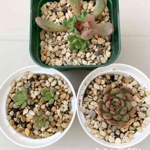 多肉の土だけを買いに大阪八尾のfeelさんに。 3つ500円狩ってしまいました😅 名無しですが、多分 真ん中 ピンクルルビー 右 ラウリンゼ 左 不明❓ 寄植えにします。