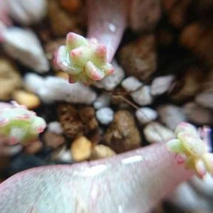 ピンクルルビー。 葉っぱ取れやすいピンクルルビーだけど 葉挿しの発根率はいい◎ いっぱい増えそう(。-∀-)♪
