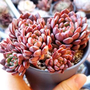 ⏪前のpicより 【グラプトベリア属 バッシュフル】 Graptoveria 'Bashful' Graptoveria 'Pinkle Ruby' Graptoveria 'Jujube' 別名 ピンクルルビー ピンクルビー ジュジュベ なつめ 交配種 交配親不明 タグは【ピンクルビー】🏷 「エケベリア 野外0℃ OK」 と書かれたの生産者さんの苗 'Pinkle Ruby'は古い呼び名で、 今はバッシュフル(G. 'Bashful') と呼ばれているそうですが、 ピンクル(ル)ビーの名前の方が 断然可愛らしいですよね💎 「Bashful」は和訳すると 「はにかみ屋の」の意味 意味を知ると バッシュフルも可愛らしい ( ꈍᴗꈍ) ☆Source☆ 【羽兼直行さん】の著書 ⏩次へ続く