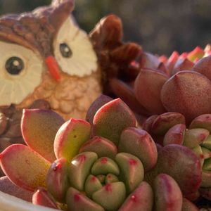 *゙✿。 フクロウさんと同化している ピンクルルビー 子株も成長中です٩(๑>ᴗ<๑)۶ 今日もよか一日に♥(*´꒳`*)ヨキヨキ🌸🍀