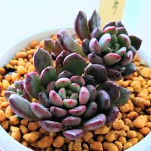 ✨✨ビューティーズ part 31 ✨✨ 反時計回りで (12時の位置から) ピンクルルビー ('19冬 トロピカルガーデン) ムーンストーン (Nov'20 多肉食堂) ラウイ✖️ルンデリー (Dec'20 松井田) creamy (May’21 ヤフオク) 桃太郎? (Jun'21) ペインテッドレディ (Mar’21 ヤフオク) そんなに派手ではないけど、なんとなく気になる子達の紹介です(*≧∀≦*)💕 ピンクルルビー(別名 バッシュフル)は今が紅葉のピークですね❣️ 今年はモリッと真っ赤になってくれたので嬉しいです🥰 ピンクルルビーはこうでなくちゃ🤗♡ ムーンストーンはなかなか紅葉が進まなかったので、思い切って冷たい風がビュンビュンあたる所に置いて水を切ってみました。正解でしたね❣️ やっとムーンストーンさんらしい綺麗な姿になりました😍😍 ラウイ✖️ルンデリー、creamy さんは温室育ちの過保護ちゃん達です。ガーリーな姿が可愛いです❣️ ペインテッドレディさんは一見地味子ですが、この時期の爪の色の入り具合はなかなかですよ☺️✨ 普及種ですがこういう子も捨てがたいですね❣️ まだまだ可愛い子達、綺麗系、イケメンが投稿の順番待ちをしております😅 うちのエケちゃん達は皆出しゃばりが多いわ〜😆笑