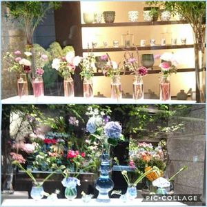 7/21(日)⑨ Bunkamuraのお洒落なお花屋さんのショーウィンドウ。 上はピンク 下はブルー こんな飾りかたもお洒落で可愛らしいですねー‼️ 昨日は晴れて暑くなった時に着いたので、ちょっと暗くて目に優しく、涼しい建物の中が気持ち良かったです。 さすが都会のお花屋さんはお洒落なディスプレイ‼と感心しました✨✴️✨日常とは異空間です。 街には街のお花屋さんの良さがあります‼気楽だし気軽だし😆