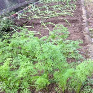 人参のまだ手前の方 大根、ほうれん草、パセリ、近くのお年寄りにもらったキャベツの苗😄 大根植えるのが遅かったのと、陽当たりが足りないのとで、まだ1本も収穫してませんが、大きくなりつつあります🤗