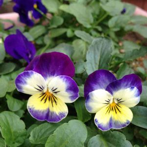 こんにちは😃 四角の鉢にこのビオラ2苗、紫2苗を色違いで植えてましたがなかなか花数が増えず、、 やっとお友達同士で写真撮影🤗