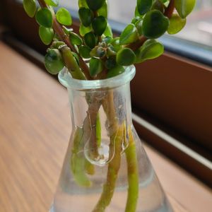 徒長してきたペペロミアコルメラ。水差ししてたら根がでてきた。ふふん...♪*゚