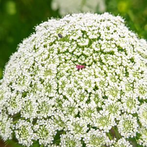 ワイルドキャロット✨ レースのような繊細な花が次々と開花中🌿 お花の真ん中にポチっと黒い虫みたいな点…これは虫をおびき寄せる擬似の虫ですって🧐 名前も色々で🌿 ・ダウカスダーラ ・ノラニンジン ・ブラックレースフラワー ・クイーンアンズレース こぼれ種で繁殖力旺盛のようだから楽しみです♡