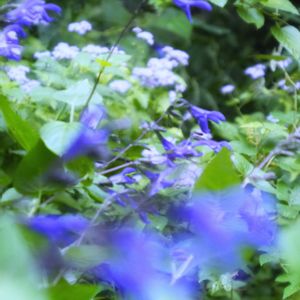 9月の庭で元気な メドウセージと青色フジバカマ。 どちらも地下茎で広がっていきます。