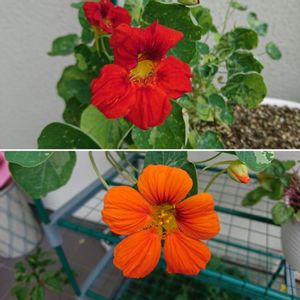 種まきが遅すぎて夏の暑さで次々と⭐️になる中、たった一株だけ生き残ったナスタチウムです。 ひょろひょろしていましたが涼しくなった途端息を吹き返し、次々と蕾が! 今度は寒くなってきたので家に入れてハンギングポールに飾ると、次々開花。何色かある中で、1番好きな赤❤️ 夏にはもうだめかな、と諦めていただけに嬉しい限りです😆 来年は、早めに種まきしようと既に種を入手済みです👌 友人の手作りオーナメントと一緒にパチリ📸