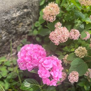 先日行ったあじさいの里からお迎えしました❤️恋愛物語 という名前の紫陽花です とても鮮やかなピンク色😍 右側はピンクアナベルで もう色があせてきましたが 今年は雨が多いせいか沢山花が咲いて嬉しいです😊