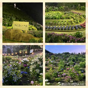 念願の あじさいの里へ 21時までライトアップされてるから また夜に行ってみたいな💕 帰り🚗は土砂降りだったので、タイミング良かったです✨ 購入もできるみたいで、名前がまだ決まってない紫陽花もあったりして。 ひとつときめくものがあったけど、行く前にHCで2つお迎えしてしまったので、諦めました🤦♀️