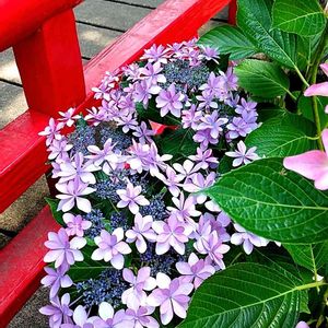 赤色のあじさい✌️✌️ みどりのまとめで紹介している 蒲郡の形原温泉のあじさいの里で 咲いている赤色のあじさいが、 とても素敵な色でした。🤗🤗🤗 何度も済みません。😅😅