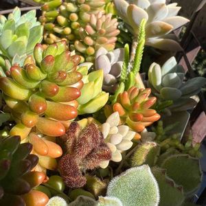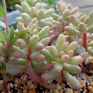 🏷️つぶつぶの日に参加します😆 セダム軍団です(*^.^*) 虹の玉さん、オーロラさん、乙女心さん、八千代さん、恋心さんです💕 前回も同じpicで投稿しましたが、またまた赤くなったので今日はつぶつぶ沼で…(^_^;)