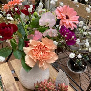 おはようございます☁️ 昨日、可愛いオーロラを購入時、アンケートに答えたら、花束をいただいたのでパチリ^_^ お花屋さん、ありがとうございました🥰