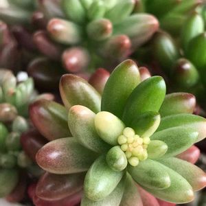 虹の玉 Sedum rubrotinctum の斑入り種で「オーロラ」の名前で親しまれています。斑入りと言ってもハッキリとしてなくてよく見ると薄い筋が入っている感じ。これが冬になると本来の強い赤を程よく薄めて、淡いピンク色になるのがとてもかわいい。 https://pukubook.jp/detail/Sedum_rubrotinctum_Aurora #セダム #オーロラ #セダムオーロラ #Sedum #SedumrubrotinctumAurora #多肉 #多肉植物 #多肉図鑑 #succulents #pukubook