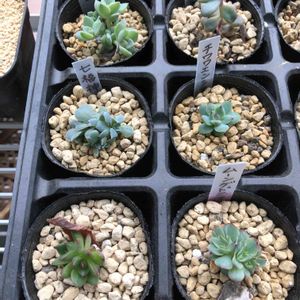 曇り空だけど、やっとパッカーンとしてた子が起き上がってきました〜😚 lierさんから届いた中に入ってたこのBIGな苗たち💓✨ 可愛いでしょ〜🥰お気に入り✨ 葉挿しちゃんたちもこんなにキレイな形に成長したらいいなぁ。。。 名無しちゃんたちお名前わかる方いますか〜??