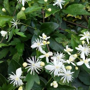 センニンソウとよく似ていて間違っているかも? のボタンヅル🌿 葉に切れ込みがあるのと蕾の先が丸いのでボタンヅルでしょうか? ウオーキング中、草むらに沢山蕾をつけていました 涼しげですね