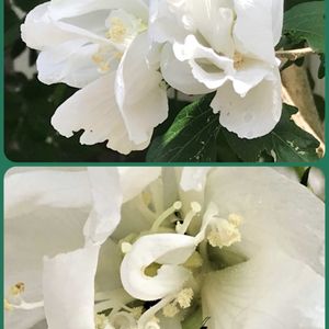 猛暑更新中、一服の清涼剤 "八重咲きムクゲ" 収まらない今年の'危険な暑さ' もはや人間が住む環境ではなくなりつつあるのでは、、、😞💦 って心配になります ギラギラと照りつけるお日さまの下、けなげに咲いていました 蟻さんも蜜の恩恵を受けています🐜 アオイ科、フヨウ属の落葉樹 庭木🌿夏の茶花🌼 中国名 木槿(朝開暮落花) 今日の花