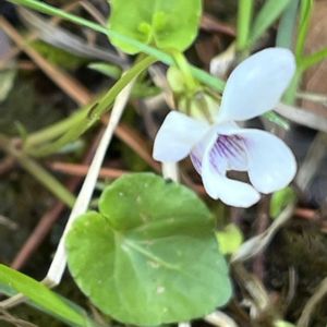 撮影4/29(①、②)、5/11(③) ツボスミレスミレ科スミレ属 北海道〜九州、屋久島まで分布 やや湿った樹林に被陰されない草地に生える 山間部では人里にも珍しくないが市街地にはあまり生えない 葉は丸っこい 基部は深く心形(3枚目) 葉は柔らかく緑色です艶がなく無毛で鋸歯あり 花色は白い4弁で反り返る 基部に紫の筋が入る 距は丸くて短い