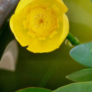 水性植物 「コウホネ・河骨」 5月17日pm3:06頃 ✧p📷qω•,,´)パシャ✧ コウホネの花が咲きました。 昨年株分けをして、小さくなったのですが、元気に育ってきてます。 蕾も幾つが見えています。 肉厚の花弁が開いて咲いています。 蕾はチュッパチャプスの様に見えますね。 蕾の大きさは20mm弱です。