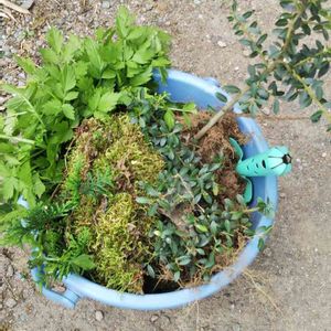 本日の散歩収穫 作品✨その② 盆栽風に仕上げました。 ひば 苔 岩ひば(お家にあるものです)