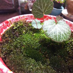 家の周りにある苔と、購入した苔とを寄せたのですが、名前がわかりません…苔の見分け難しいです…でもユキノシタは元気
