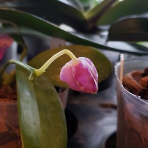 Phal.pulchraさん😊 親株の高芽である子株が開花。親株から切り離しました。親株の方も胴切り。胴切りした下の部分から既に小さな新芽が出ていて一気に3株に株分けできました😺🌿🌿🌿微かに良い香りがします。