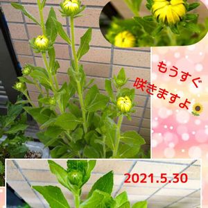 昨年8月に仲間入りした ルドベキア プレーリーサン🌻 今年は 昨年より たくさんの蕾がついています🎶 もうすぐ、もうすぐ🌻 ワクワクします🤗🎶