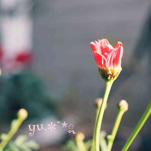 マーガレットストロベリーホイップ🌼 一つ目の蕾が開いてきました~💕(*˘︶˘*).。.:*♡ 先週末から20℃越えの暖かさ💞 今日は更に気温が上がり、5月の陽気だとか…💦 その分花粉も多くて大変です~🤧💦