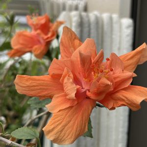 まだ部屋の中ですが、ハイビスカスが咲きました🌺 今年も枝ぶりは良くないです😢