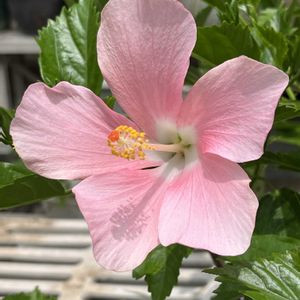 今日は今シーズン初めてのハイビスカス🌺ピンクが咲きました🩷 ハイビスカスも暑そうです💦