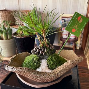面白い盆栽を買いました😆 松ぼっくりに黒松の種を仕込んであるそうです。