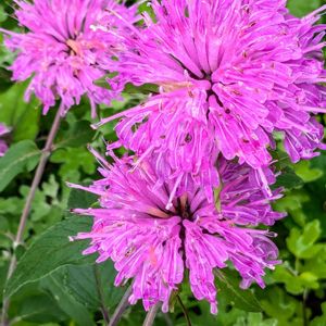 背丈の高いピンクの「矢車薄荷(ヤグルマハッカ)」で、おはようございます🩷☘️😊☘️🩷 ハーブが好きな私にとっては、「ベルガモット」の呼び名の方が、より馴染みがあります🫖🌸✨ "矢車薄荷"は、北アメリカ原産のシソ科の植物🇺🇸 花名に"ハッカ"とつくだけあって、披針形の葉っぱを揉むと、スペアミントよりは穏やかな、柑橘系のベルガモットオレンジに似た爽やかな香りがします🍃🍊✨ また、消化促進や鎮静作用のある薬効性から、葉や花は昔からハーブティーやサラダ、ポプリなどにも利用され、かつてはネイティブアメリカンが薬草として利用し入植者たちも紅茶の代わりに愛飲するなど、古くからアメリカ人の生活に寄り添ってきた身近な植物だと知ることが出来ました😊🥗🫖🍃✨ ー別名は、「モナルダ」、「ベルガモット」、「松明花(タイマツバナ)」、「ビーバーム」等。 ー花言葉は、「安らぎ」、「感受性豊か」…他。