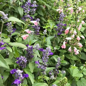 サルビアXサルビア😆 ブルーのは園芸店で通常価格で買っても安い苗、ピンクは種まきしました💗暑い夏でもずっと元気です❣️