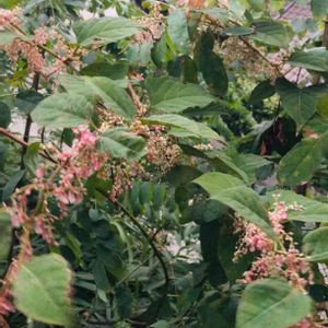 やなさんにイタドリと教えていただきました。 道路脇に初めは白っぽい花が咲いていたと覚えているのに今朝通ってみると色はピンクにかわっていました。小さな実ができ始めていました。 木の高さは2メートルぐらいです。 イタドリは雌雄異株でこれは雌株。めかぶの花が種になりかけているところらしいです。😃😊😃😊😃😊