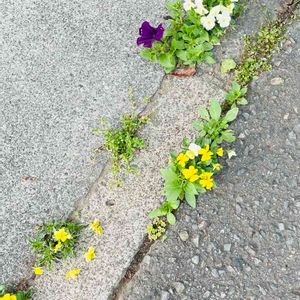 買い物の帰り道 ど根性ビオラとど根性ペチュニアに会いました😄 道路脇の溝に零れ種からでしょうか? たまにこう云うの見かけるけど、 まさかペチュニアまでとは。 沢山咲いてて驚きました👀🫢 見えない所にも咲いてました。
