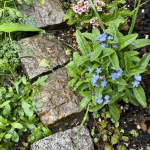 こぼれだねで咲く勿忘草 去年は出たのに、今年は出ないのかなぁ?と思っていたら、ニゲラの下でひっそりと咲いていました😅 小さすぎて気づかなかったよ〜😅 ひょっとしらたら、雑草と間違えて抜いていたかもしれません💦