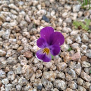 こんにちは🍀 お庭の通路でビオラさんが咲いていました! 抜くのは止めてそっと見守っていきます😃