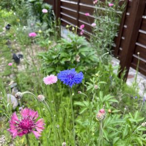 こぼれだねからのヤグルマギクが咲きました 今年は色とりどり 昨日までと違って、14、5℃しかないため肌寒い一日になりました