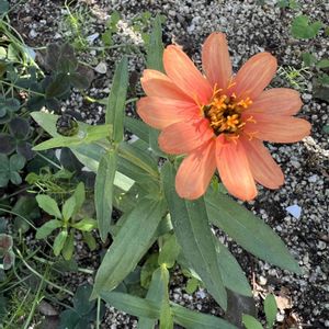 こぼれ種からのジニア、これまでになかったオレンジ色が咲きました