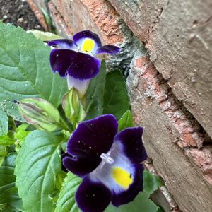 こぼれだねシリーズ♪ 今頃咲いてきたトレニア。 こんな所には植えてないのに、土に種が混ざっていたのだろうな。しかも一昨年のやつ。 なんか生えて来たぞ、雑草では無さそうだ、残しとくか。という勘が結構当たるものだ😄
