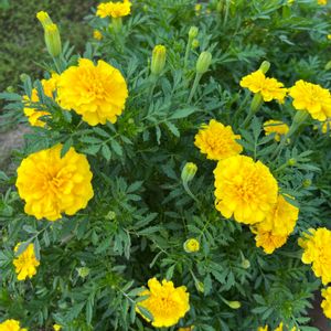 こぼれ種からのマリーゴールドが今年も元気に咲いています☺️