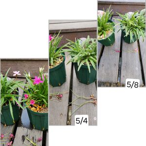 白いアッツ桜🎶 (ピンク🩷はやっぱ消えてしまったのね💦) イキシアピンク 手入れなしでも咲いてくれてます♪ アヤメとムラサキツユクサ アヤメで合ってるのかな🤔❓ ジギタリス 調子いいねー🙆♀️ 安心してる🎶 曇り☁️予報なので元気出る💪😎 色々と植え替えを済ませちゃいますネ🪴