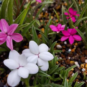 アッツ桜✨ 5年目です😃 窮屈になったのでおととし球根を2鉢に分けました そしたら片方だけ少しフチがピンクがかった花が咲くようになりました(元々は白、今も片方は白) 土?日当たり?なんで〜?😅