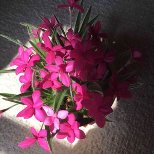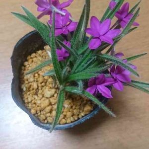 頂きもので、名前がわかりません。💧 濃いピンク色のかわいい花で、葉っぱには毛が 生えています!
